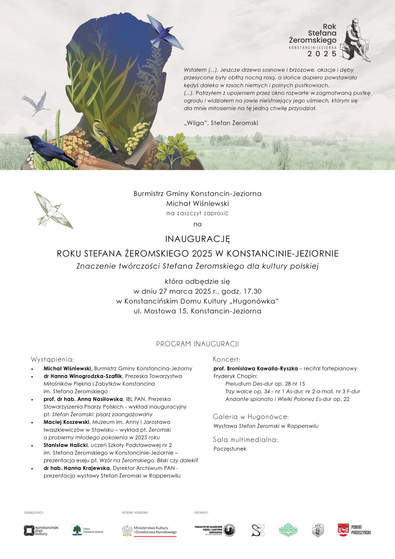 Zapraszamy na inaugurację i śledzenie wydarzeń organizowanych w Roku Stefana Żeromskiego w Konstancinie.