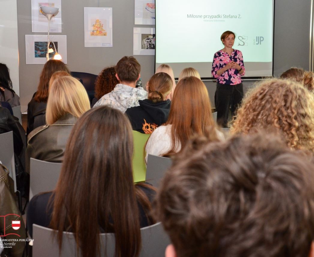W Miejsko-Gminnej Bibliotece Publicznej im. Cypriana Norwida w Wyszkowie 23 maja 2025 r. Katarzyna Sobolewska wygłosiła wykład dla młodzieży licealnej pt. Miłosne przypadki Stefana Ż.