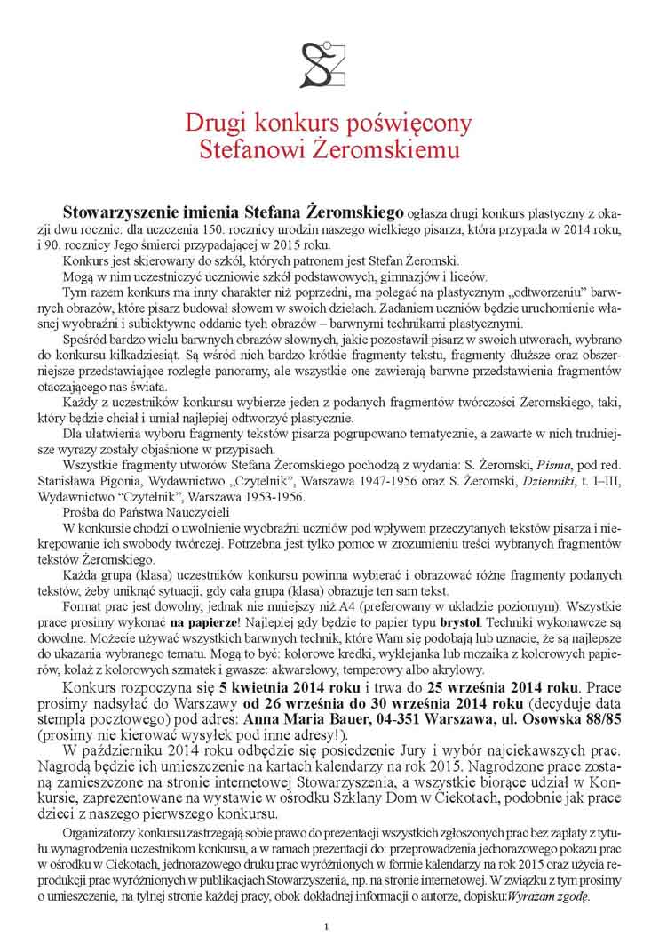 Stowarzyszenie imienia Stefana ŻeromskiegoKONKURS PLASTYCZNY DLA SZKÓŁ, nowa edycja